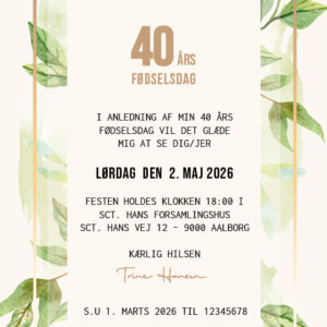 Invitation | Fødselsdag | Mintgrøn Løv