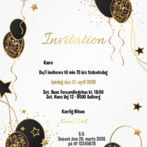 Invitation | Fødselsdag | Gyldne Balloner