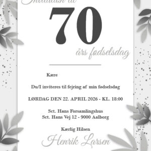 Invitation | Fødselsdag | Perlegrå Bladkant
