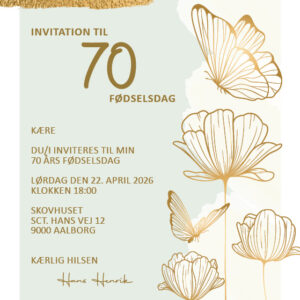 Invitation | Fødselsdag | Gylden Sommerfugl